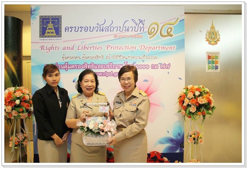 นางศศิวิมล ธนศานติ รองอธิบดีกรมบังคับคดี และเจ้าหน้าที่กรมบังคับคดี ร่วมงานสถาปนาครบรอบ 14 ปี กรมคุ้มครองสิทธิและเสรีภาพ พร้อมมอบกระเช้าดอกไม้แสดงความยินดีให้กับ นางสาวปิติกาญจน์ สิทธิเดช อธิบดีกรมกรมคุ้มครองสิทธิและเสรีภาพ ณ กรมคุ้มครองสิทธิและเสรีภาพ ชั้น 3 ศูนย์ราชการเฉลิมพระเกียรติ 80 พรรษาฯ อาคารราชบุรี ดิเรกฤทธิ์ (อาคาร เอ) ถนนแจ้งวัฒนะ แขวงทุ่งสองห้อง เขตหลักสี่ กรุงเทพมหานคร เช้าวานนี้