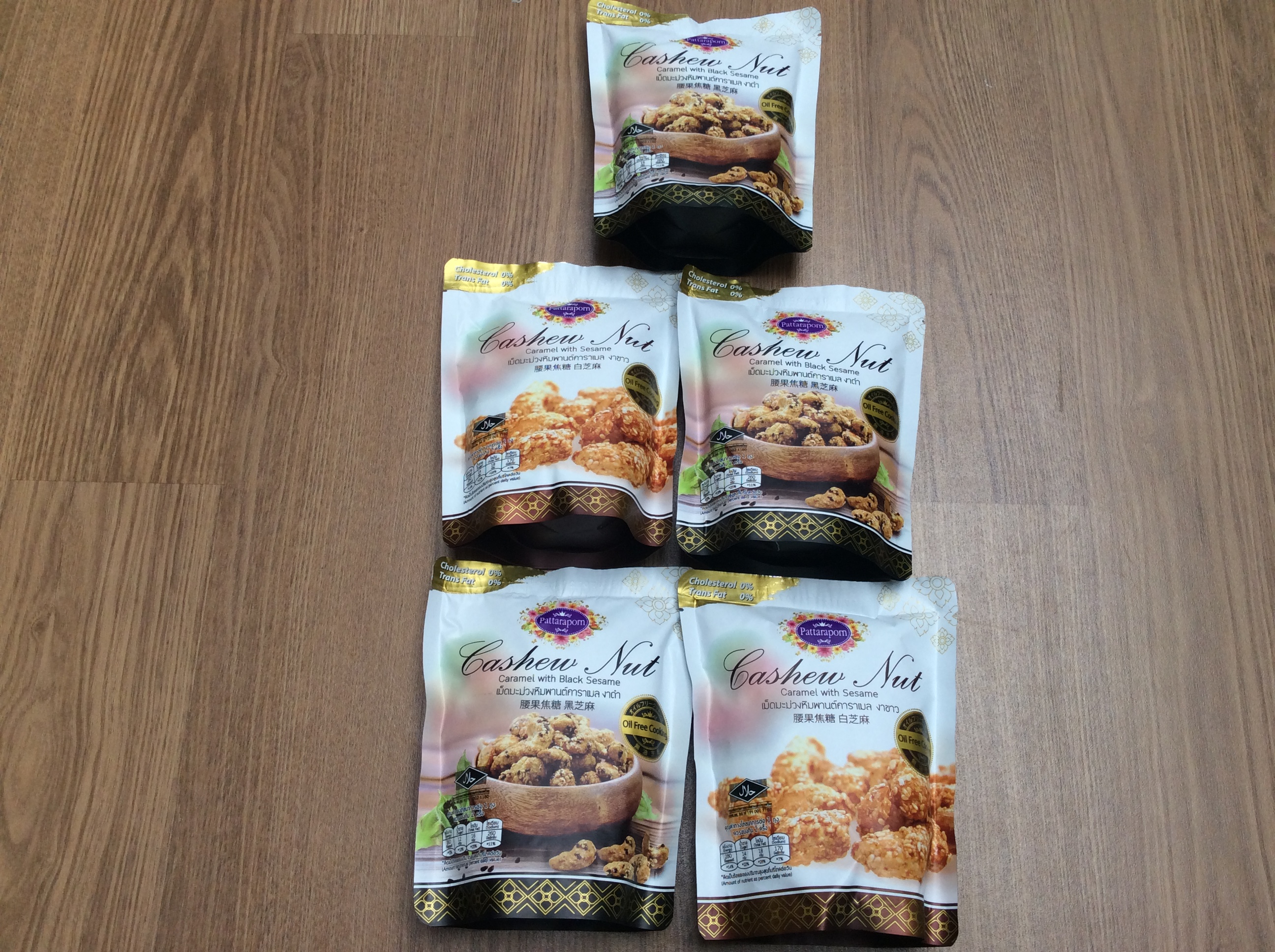 “Pattaraporn” โลโก้นี้ที่เห็นวางขายหยิบเอามาชิมเป็นเพียงแค่เม็ดมะม่วงหิมพานต์คาราเมลงาดำงาขาวส่วนจะมีชนิดอื่นๆอะไรเพิ่มเติมหรือไม่ต้องติดตาม