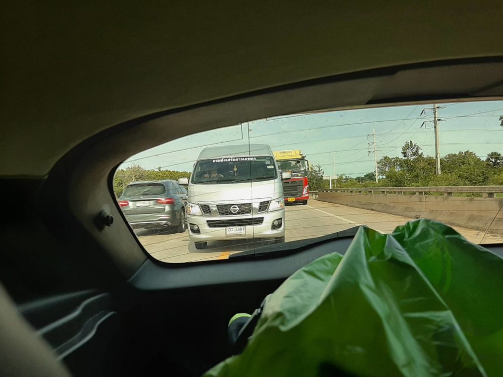 จากนั้นรถตู้สป.กษ. ทะเบียน ฮอ7404 ก็ขับตามมาปาดตัดหน้ากระชั้นชิดรถของเธออีกครั้งหนึ่ง เท่านั้นยังไม่พอ รถตู้อีกคันหนึ่งหน้ากระจกเขียนว่ากรมส่งเสริมการเกษตรก็ขับปาดตัดหน้าหมายจะเบียดให้รถวอลโว่ตกถนนให้ได้